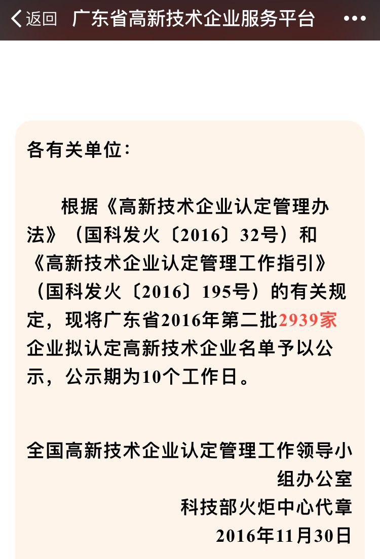 11月30日,全國高新技術(shù)企業(yè)認定管理工作領(lǐng)導(dǎo)小組辦公室公布了2016年廣東省第二批擬認定國家高新技術(shù)企業(yè)名單,共2939家企業(yè)通過國家高新技術(shù)企業(yè)認定。科園榜上有名,榮獲國家高新技術(shù)企業(yè),這是對我司的高度認可,更堅定了我們自主研發(fā)、自主創(chuàng)新,堅持中國創(chuàng)造的產(chǎn)業(yè)決心!