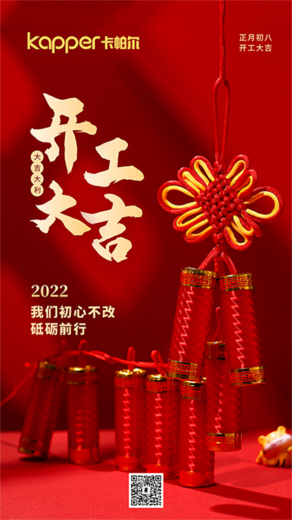 2022年正月初八,開工大吉!Kapper卡帕爾新的一年以新的風(fēng)貌、新的狀態(tài)竭誠為您服務(wù)!愿您虎虎生威,虎年大吉,財(cái)源滾滾,生意興隆!
