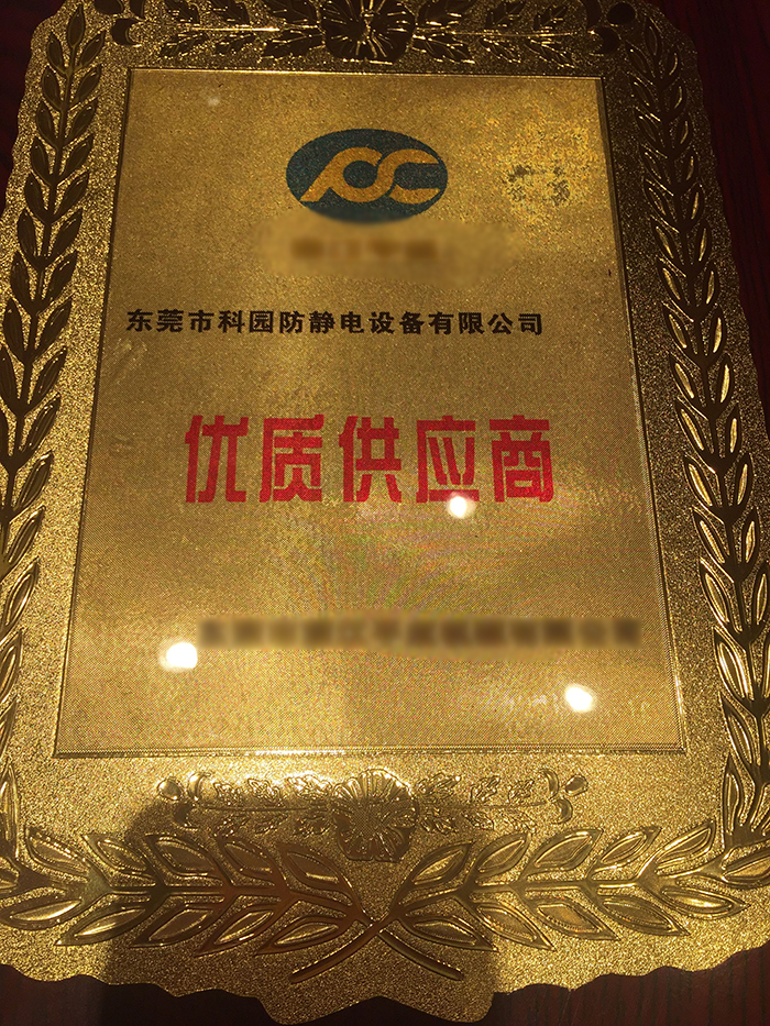 東莞市科園防靜電設(shè)備有限公司榮獲客戶(hù)10年來(lái)三個(gè)最優(yōu)質(zhì)供應(yīng)商之一。