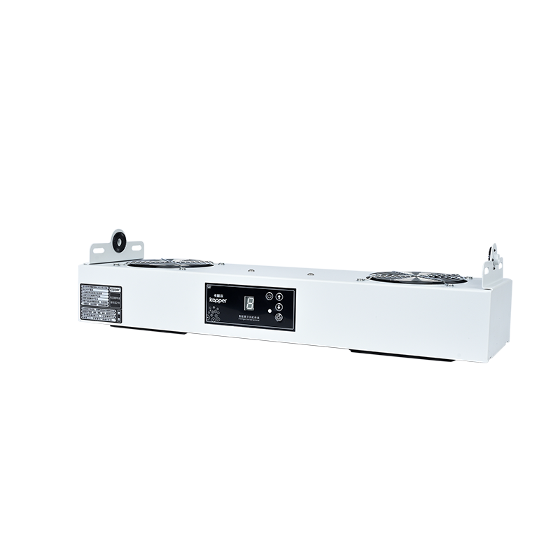 KP1102B 第5 代智能型懸掛式直流雙頭離子風(fēng)機(jī)應(yīng)用于精密電子、醫(yī)藥制造、塑膠、光電等行業(yè)。