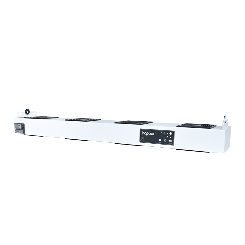 KP1004D第4代半智能型懸掛式四頭離子風(fēng)機(jī)是卡帕爾公司研制生產(chǎn)的消除物體表面靜電的智能型除靜電裝置。