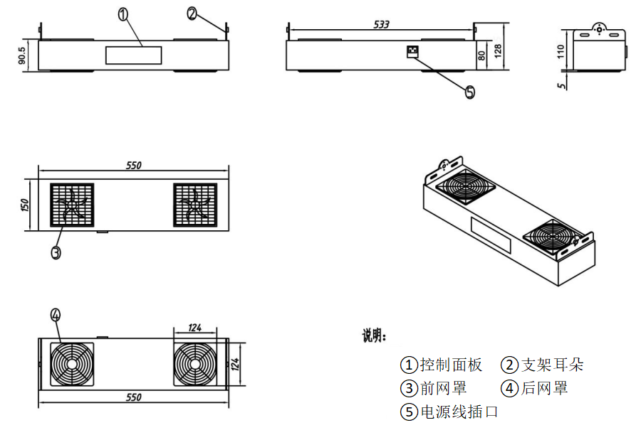 550mm(L)*150mm(W)*80mm(H)(不含支架耳朵) |