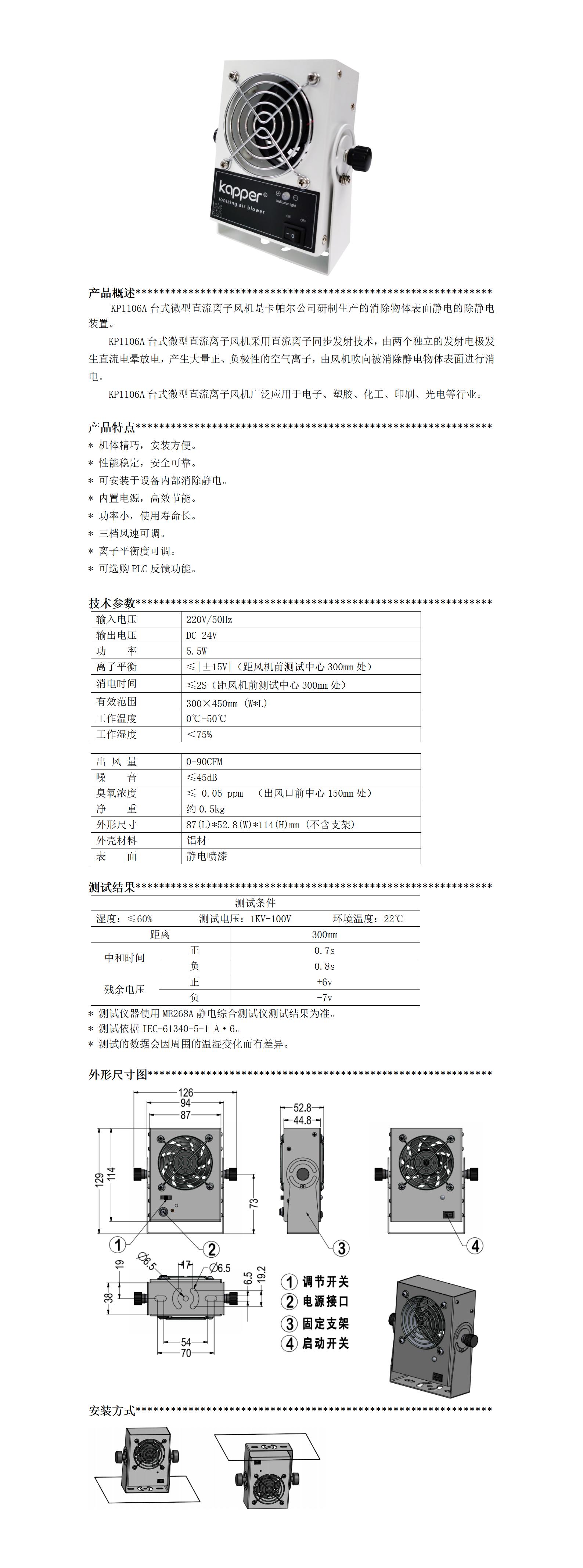 KP1106A 臺(tái)式微型直流離子風(fēng)機(jī)