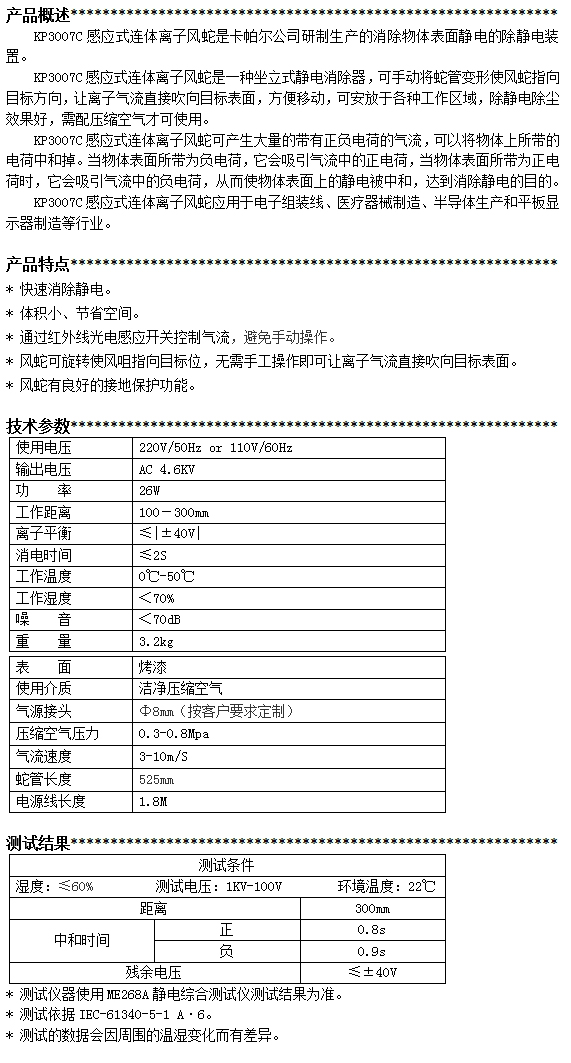 KP3007C第三代感應(yīng)式連體離子風(fēng)蛇