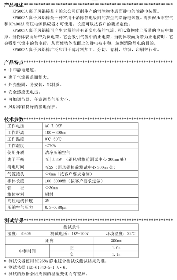 KP5003A第三代離子風鋁棒