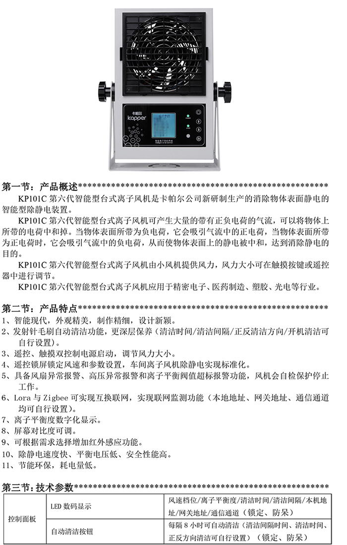 KP101C第六代智能型臺式離子風(fēng)機(jī)