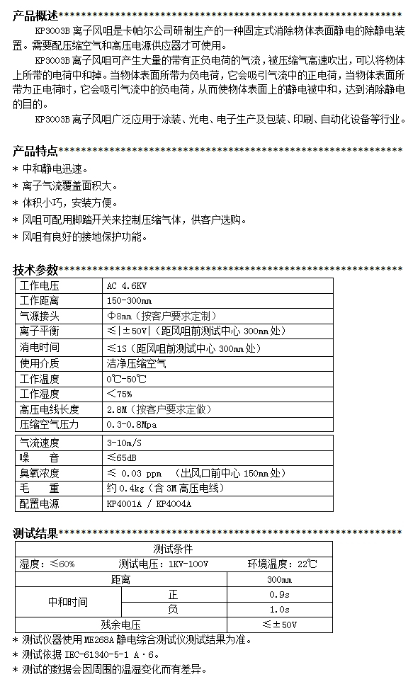 KP3003B第三代扇形離子風(fēng)咀