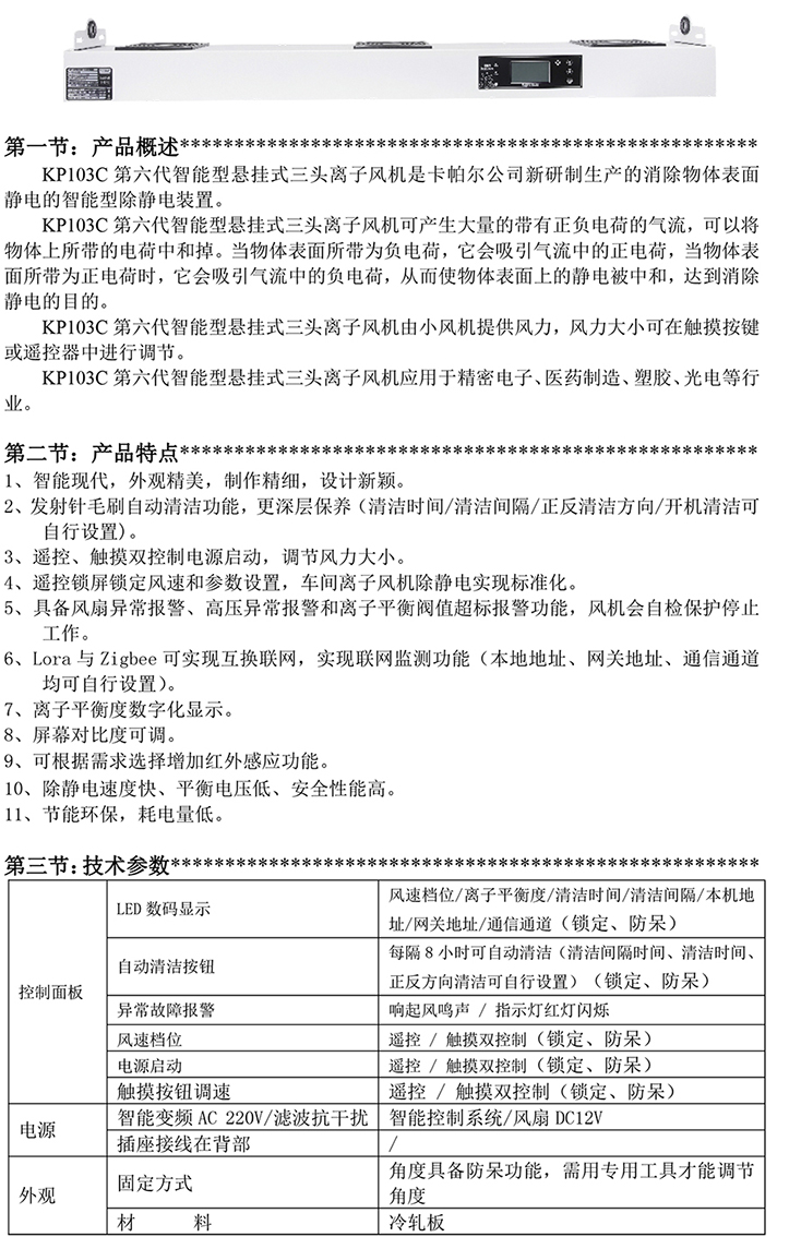 KP103C第六代智能型懸掛式三頭離子風(fēng)機(jī)