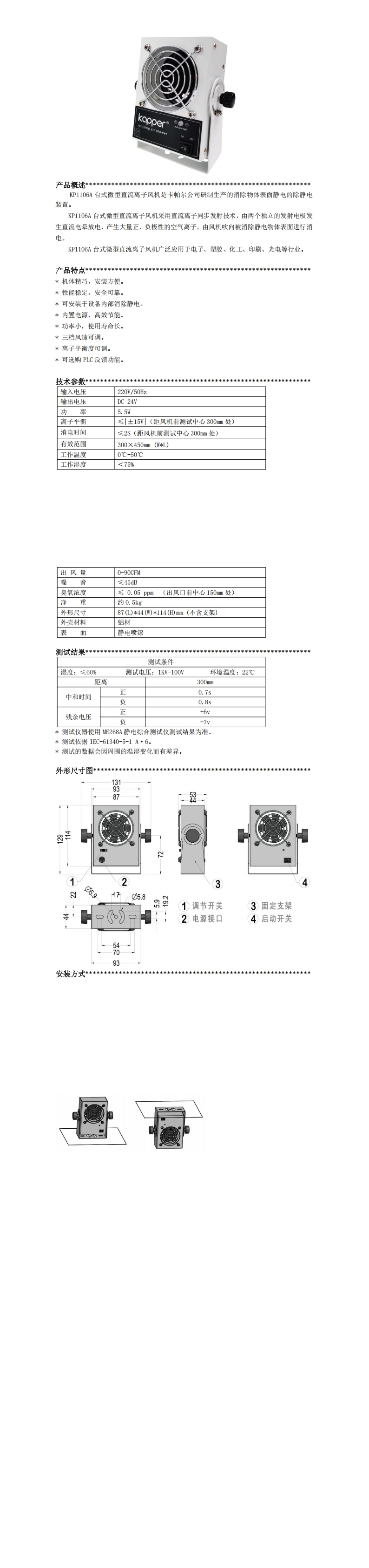 KP1106A 臺式微型直流離子風機
