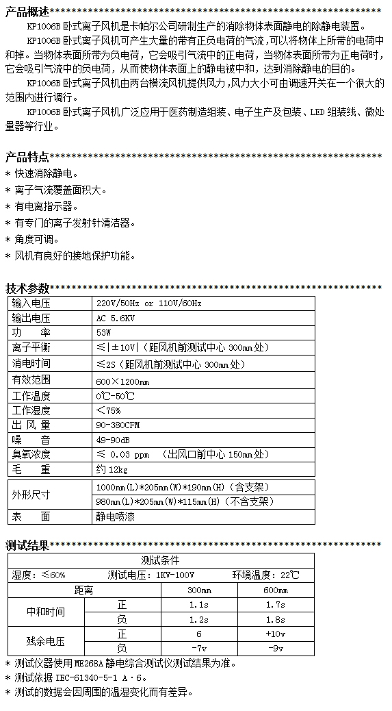 KP1006B第三代臥式離子風(fēng)機(jī)