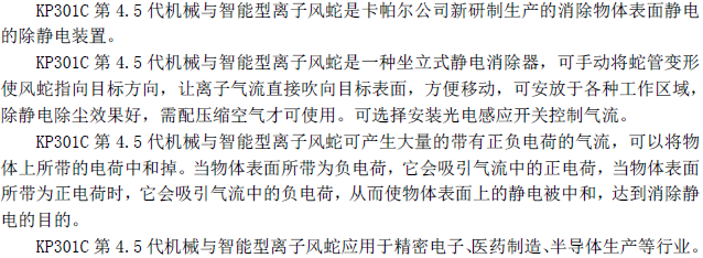 KP301C第4.5代機械與智能型離子風(fēng)蛇