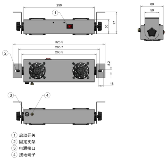 250 mm(L)* 50 mm(W)* 80 mm(H) (不含支架) |