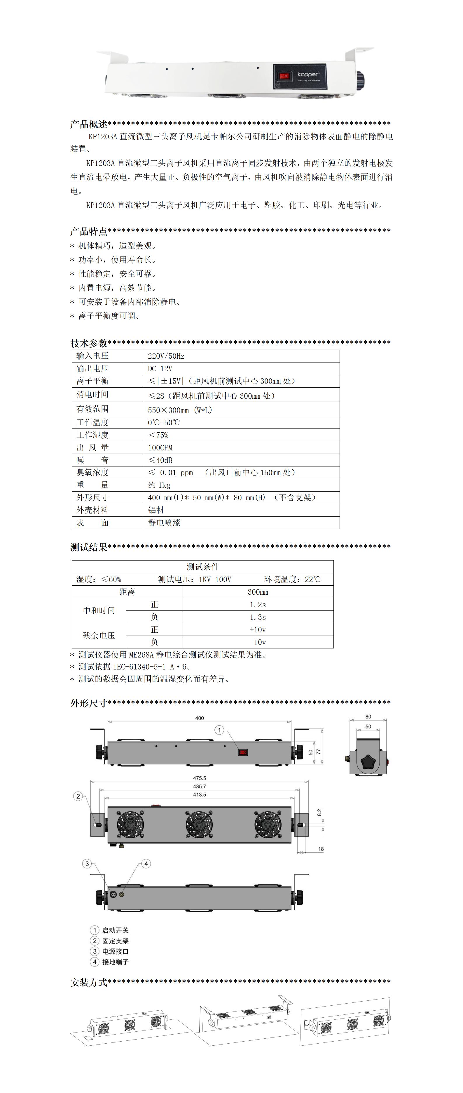 KP1203A直流微型三頭離子風(fēng)機(jī)