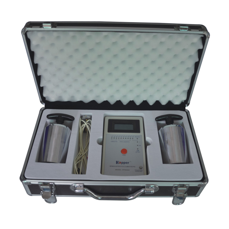 KP0030A重錘式表面電阻測試儀遵循ASTM標(biāo)準(zhǔn)D-257測試方法,測試時(shí)只需把兩個(gè)重錘放置在需要測量的物體表面及按下紅色的按鍵,儀器上的十個(gè)103Ω-1012Ω或絕緣, LED將其中一個(gè)測試數(shù)值亮起,亮起的LED燈所指示數(shù)值即為被測物體的表面電阻,并帶數(shù)字顯示溫度和濕度。