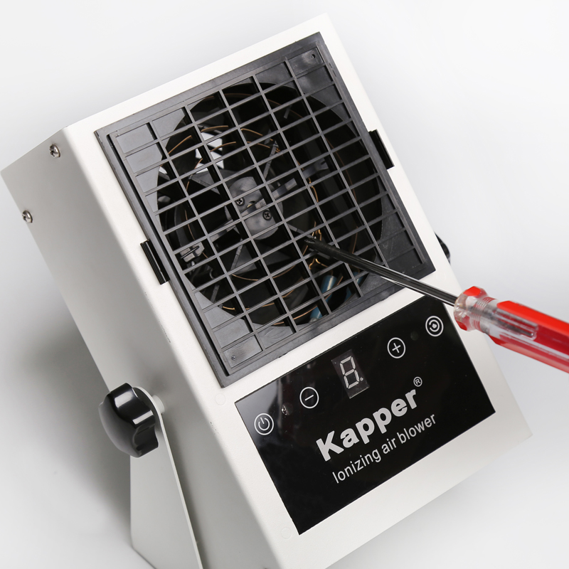 KP101B第5代智能型臺式離子風(fēng)機(jī)是卡帕爾公司最新研制生產(chǎn)的消除物體表面靜電的智能型除靜電裝置。